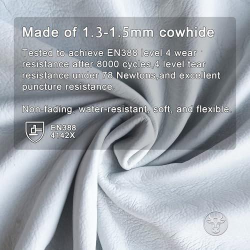 Excellent leather material: These work gloves are made of 100% thick cowhide leather, thickness 1.3-1.5mm. They are soft, flexible, and have no irritating odor, making them ideal as durable working gloves for various tasks.