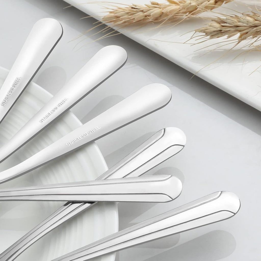 【ERGONOMIC & DISHWASHER SAFE】 The 24 Pieces stainless steel tea spoons are ergonomic design, mirror polished. The curvature of our round handle is designed according to the posture of the hand, and the edge of teaspoons are smooth that they won't hurt you. Besides, these small coffee spoons are carefully weighted to be comfortable to hold