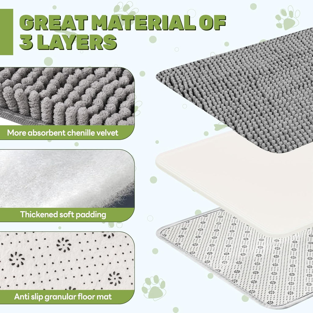 Our high-density chenille loops act like a "dirt magnet" for your dog’s paws! The ultra-soft, thick fibers penetrate deep into paw pads to trap mud, sand, and water—instantly—so you won’t have to chase your pup around with a towel after walks or rainy days. Perfect for homes with hardwood, tile, or carpet—say goodbye to messy footprints all over your furniture.