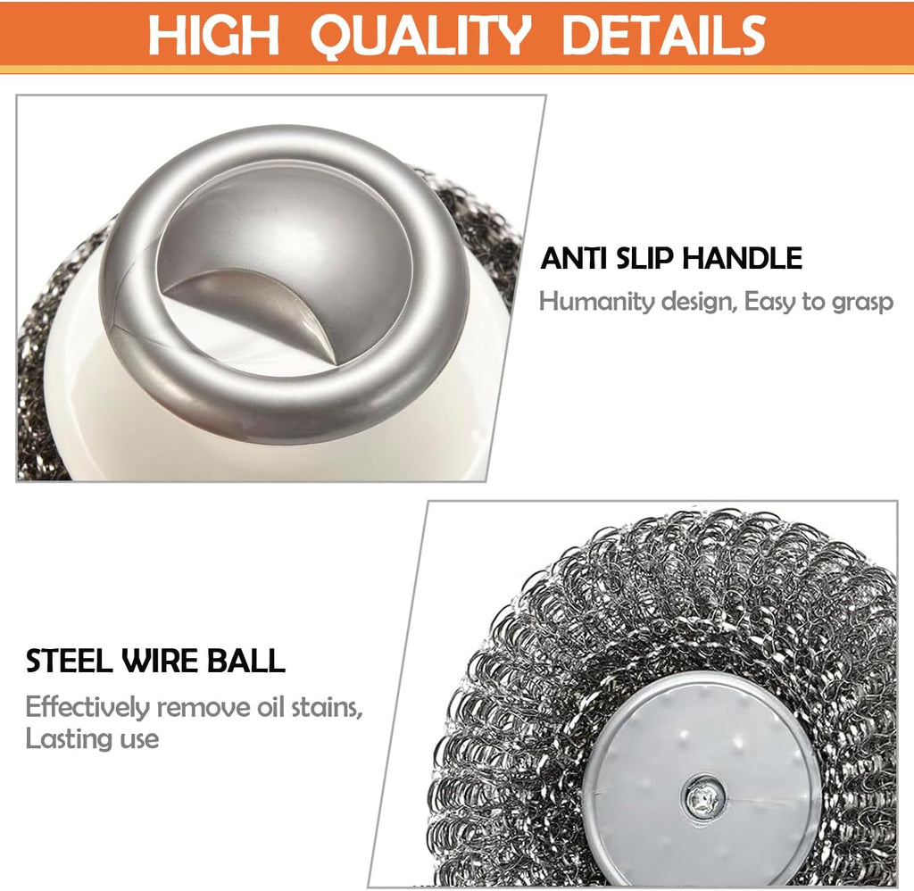 - Handle Design: Ergonomic brush handle to deliver superior performance while keeping clean when using metal scrubbers for dishes, cleaning pans, pots, outdoor furniture, or wood decksush is a good help for housework, removing tough stains and grease easily.