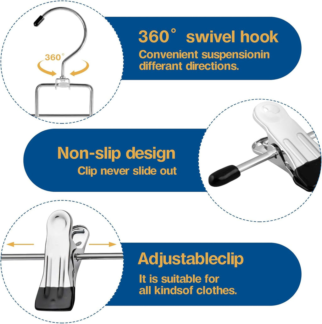 Our skirt hangers feature 360° swivel hooks that enable you to rotate your clothes without moving the clip hangers. Hanging your clothes horizontally or vertically, these magic hangers offer dual functionality. Express your personal style through your closet organizer, as only the finest closet hangers space saver can provide. Effortlessly arrange your clothes with the finesse of space saver hangers, embracing the convenience of a clothes organizer for the closet.