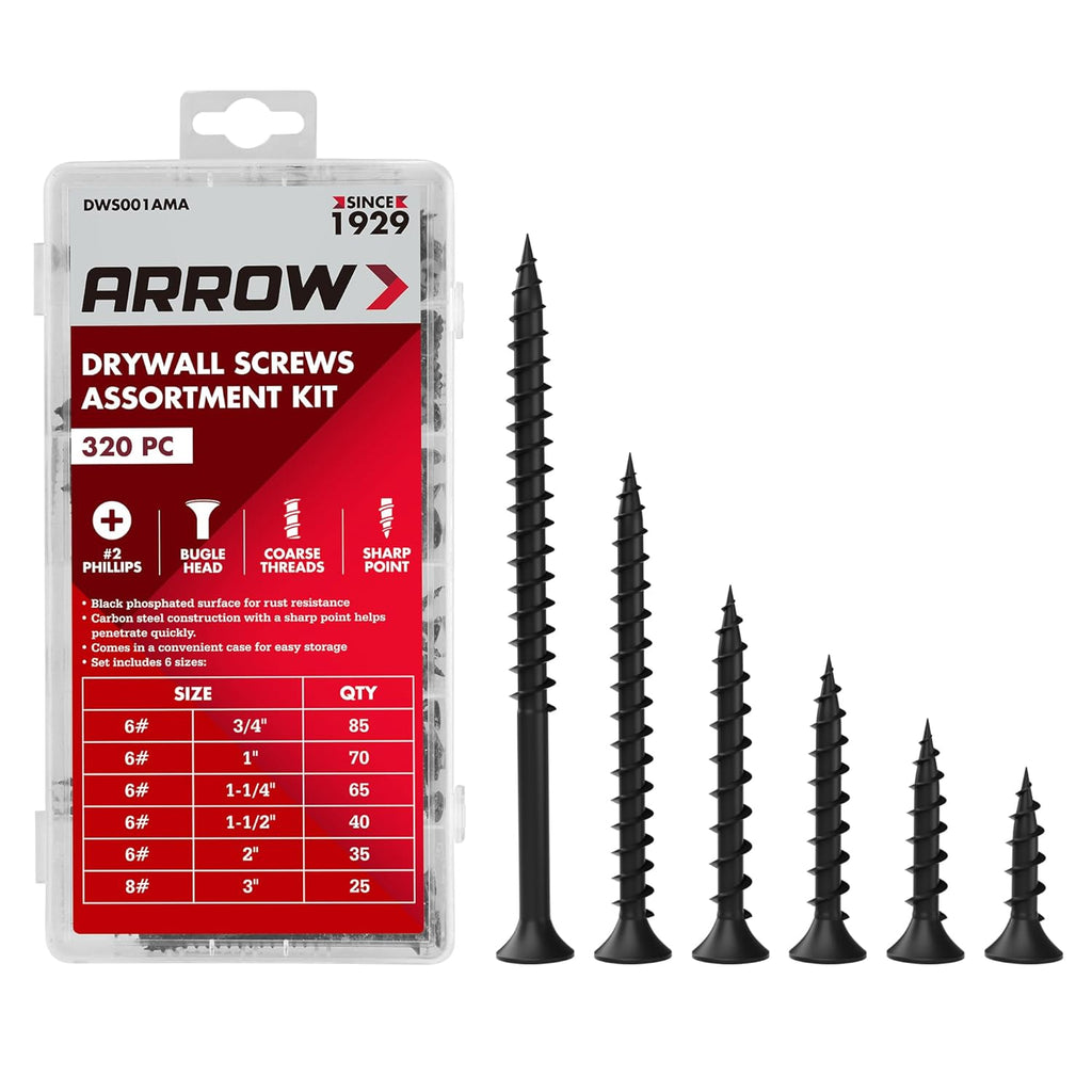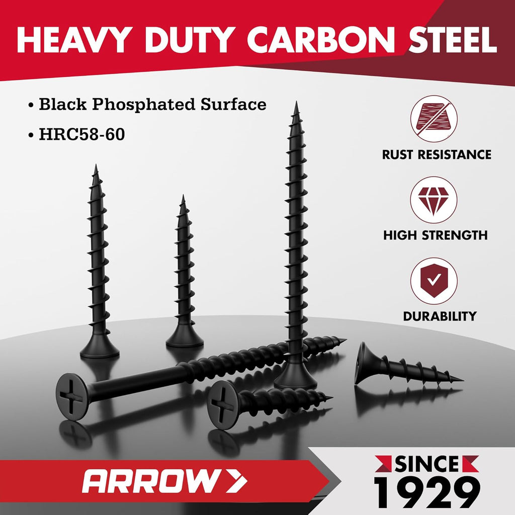 Premium Materials: The drywall screws are made of heavy duty carbon steel for strength and durability. The black phosphate coating resists corrosion and improves adhesion for paint and mud, making them ideal for reliable, long-lasting installation even in tough conditions