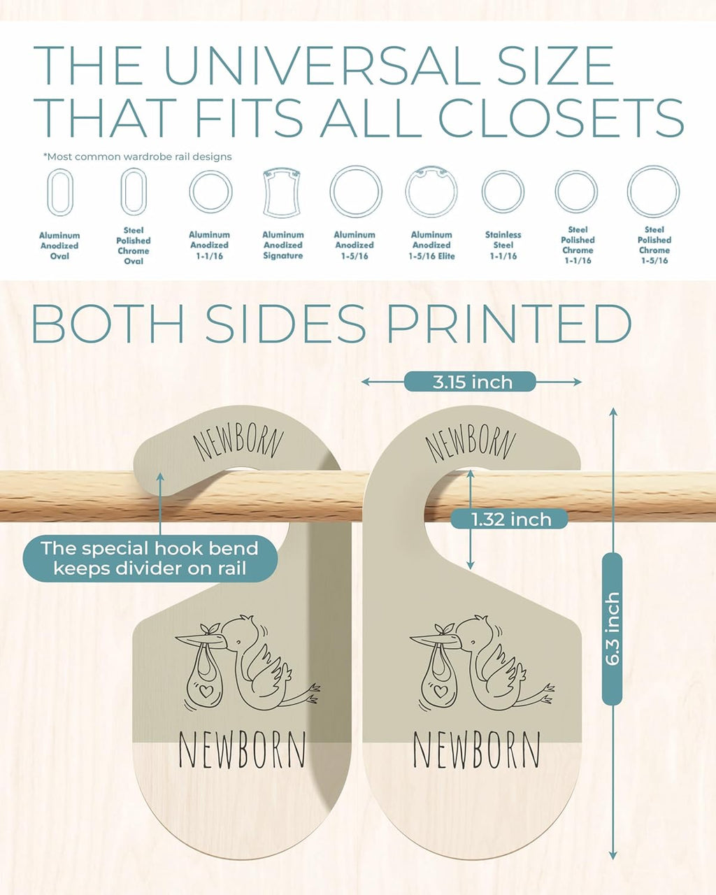 - Features a snug design with a special hook bend that keeps dividers firmly in place on most closet rails, ensuring your wardrobe stays orderly. Perfect for boho baby and nursery decor boy themes.
