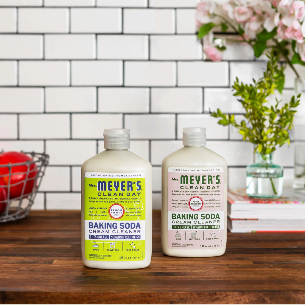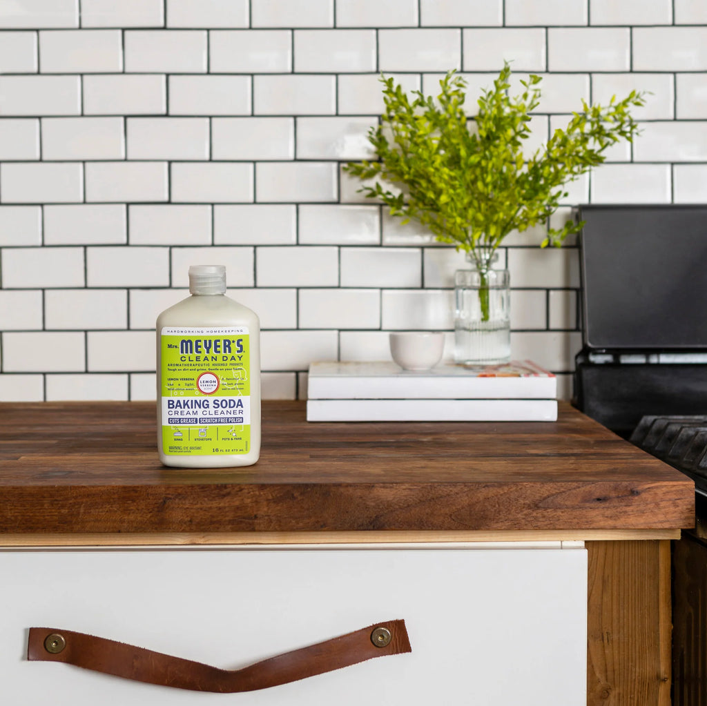 Mrs. Meyer’s Baking Soda Cream Cleaner removes soap scum and grease build-up to make your bathroom or kitchen sparkle. It’s Baking Soda for cleaning that can scrub away cooked-on grease, tough grime, and soap residue. It is safe to use on sinks, stovetops, and pots & pans. Mrs. Meyer's products are made with cruelty-free formulas and are Leaping Bunny certified.