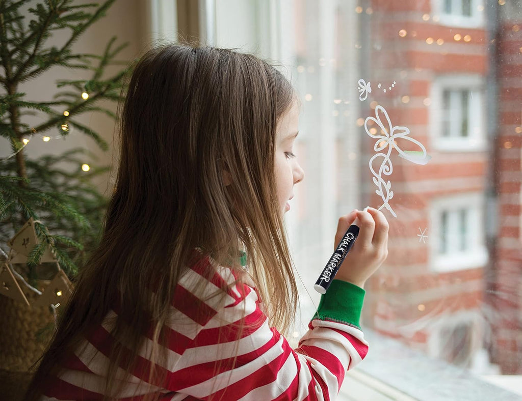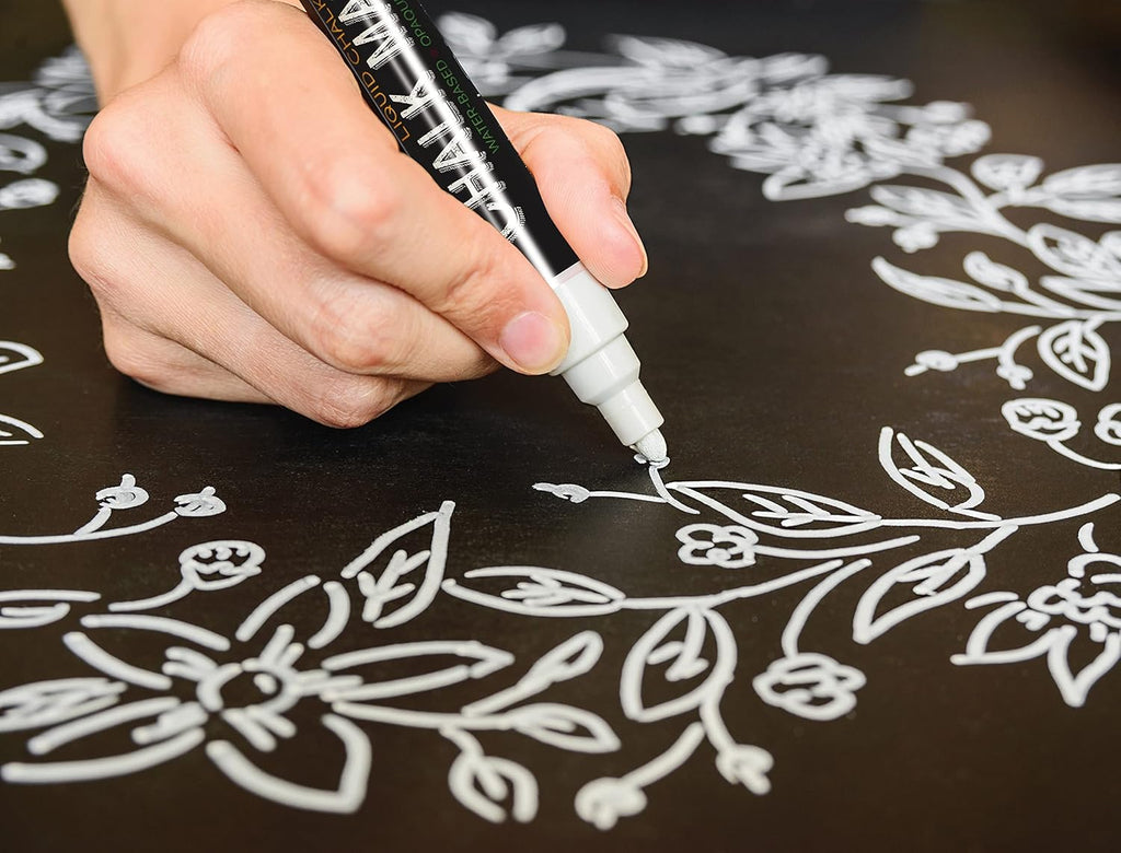 CHALK MARKER, CHALK & ERASER INCLUDED - Comes with a white liquid chalk marker, a small box of chalk, and an eraser