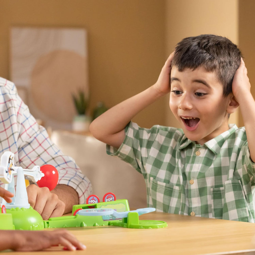 Keepy Uppy Balloon Bluey Game: Bring the excitement of Bluey to life with the Keepy Uppy kids toy game, where players join Bluey, Bingo, and Chilli in a fun and rewarding challenge to keep the balloon in the air using their character paddles, making sure it never touches the hedge. Designed with a motorized balloon that flips and spins across the board, these fun games keep children engaged by encouraging quick reflexes and nonstop action. Perfect for family game nights, this Bluey fun toy game fosters teamwork, problem-solving, and plenty of shared laughter, creating memorable bonding moments for kids and parents alike. Players preserve their pop tokens by keeping the balloon safely away from the hedge, with the winner decided by who has the maximum tokens left at the end of play. Made for 2 to 4 players ages four and above, these toddler games are a wonderful birthday, holiday, or surprise gift for any Bluey fan, offering hours of shared fun, family connection, and imaginative playtime or storytime fun.