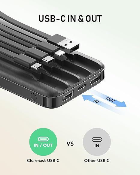 10,000mAh external charger provides almost all-day power, keeping your phone charged for emergencies or mobile payments; slim portable charger with a 37Wh capacity complies with airline carry-on regulations. It is both a travel/trip essential and an ideal choice for daily demand. Powerful Lifesaver for everyone