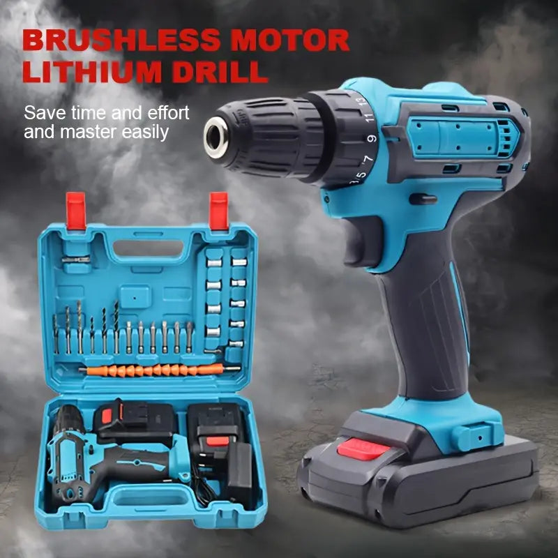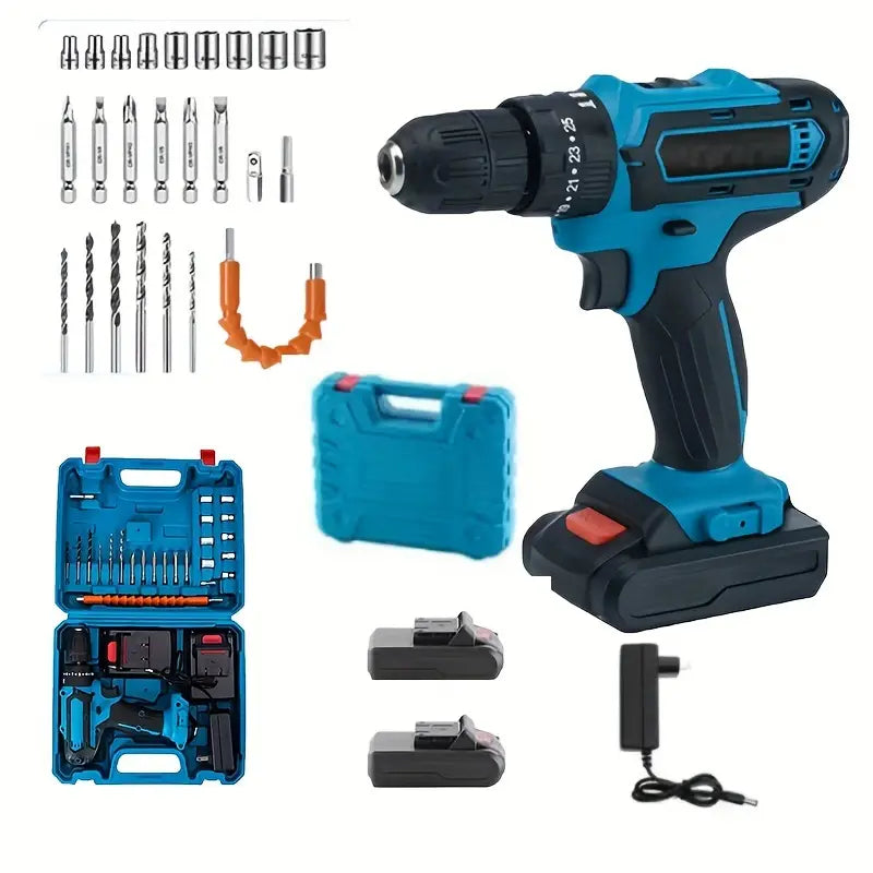 Take on any home project with this all-in-one cordless drill set with 119 pieces. Featuring a powerful 20V motor and delivering up to 40Nm of torque, this electric drill is designed to handle drilling, fastening, and repair work in a wide range of materials including wood, plastic, and metal. This complete power tool kit includes a rich selection of bits, sockets, and accessories, giving you the right tools for any task. The drill and accessories are packed in a strong tool box, making storage and transport simple and efficient. Designed for comfort, the cordless drill is lightweight and easy to maneuver. With variable speed control and built-in LED lighting, it offers precision and visibility for work in low-light areas. The forward and reverse switch adds control for screwing and unscrewing tasks. Whether you're doing home improvement, assembling furniture, or fixing household items, this drill set provides reliable power and convenience. A smart choice for anyone who wants durable performance, mobility, and versatility in one compact package.