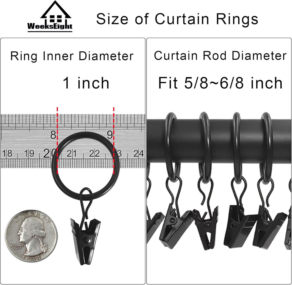 Curtain Rings Slide Easily Curtain rings eyelet inner diameter 1 in, drapery rings with clips for used in ones 1 in curtain rod and that’s the perfect size, the curtains slide easily, multiple times a day and function perfectly, make your life full of fun.