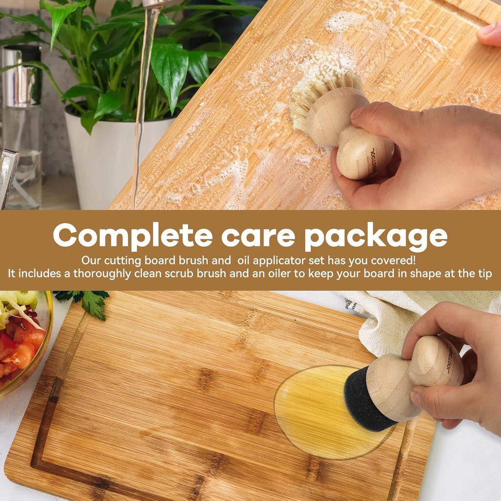 COMPLETE CARE KIT: Tired of dull cutting boards? Our scrub brush and oil applicator set is perfect for you! It includes a brush for cleaning and an oil applicator for keeping your boards in good condition.