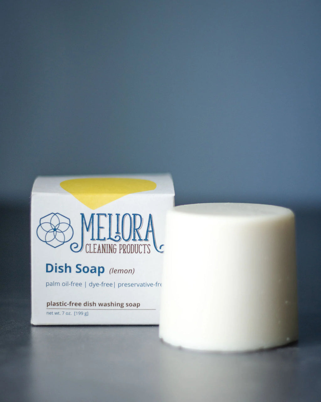 Our solid Dish Soap bar is a plastic-free alternative to liquid dish soap. Start by placing the bar near your sink. We recommend a soap dish, mug, or coaster to catch excess water, but you can also wet the bottom of the bar and stick it directly on the counter. Wet your sponge, dish brush, or cloth and rub it over the top of the dish soap. Be sure to develop a rich lather on your sponge or brush, then rub it on your dirty dishes to hand wash.