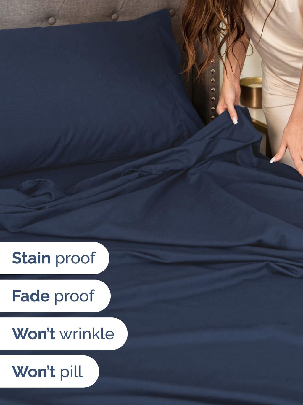 GREAT FOR DOUBLE PILLOW TOP MATTRESS: These bed sheets are perfect for mattresses with a 3 inch or 4 inch topper on top, memory foam toppers, big mattress pads, pillow tops, foam toppers, big foam toppers, pillow top mattresses and memory foam. These sheets will not come off.
