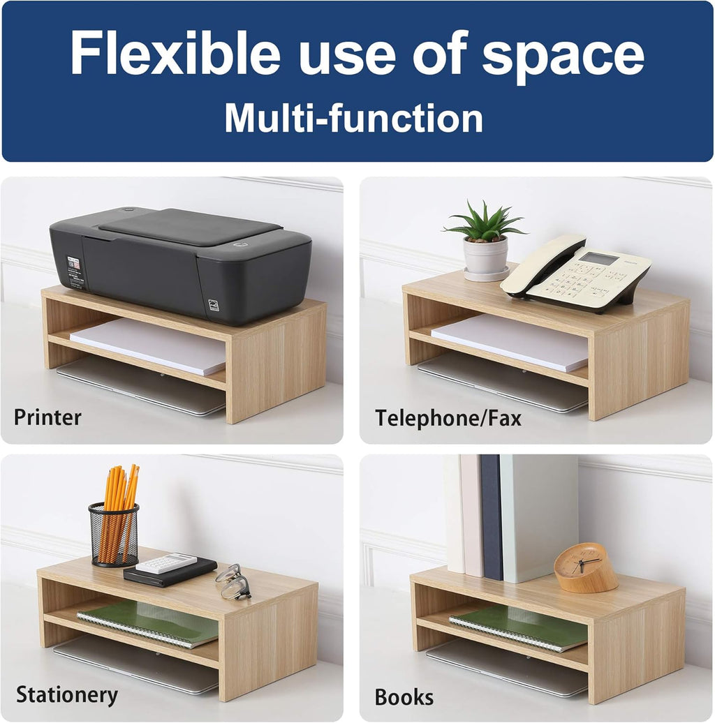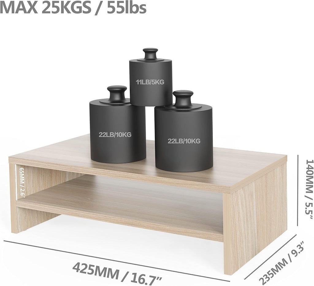 Extra storage space while improving the height of your computer display. They are spacious enough to hold some of your larger sized things such as books, tablets. The storage of small stuffs is not even a problem.