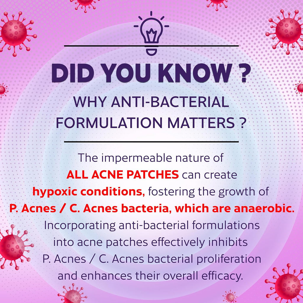 Infused with the powerhouse ingredient RETINALDEHYDE, our medical grade hydrocolloid pimple patches for face are proven highly effective against P. Acnes / C. Acnes bacteria, the main culprit behind those unwanted zits and acne breakouts.