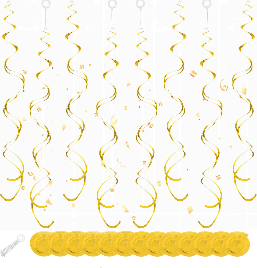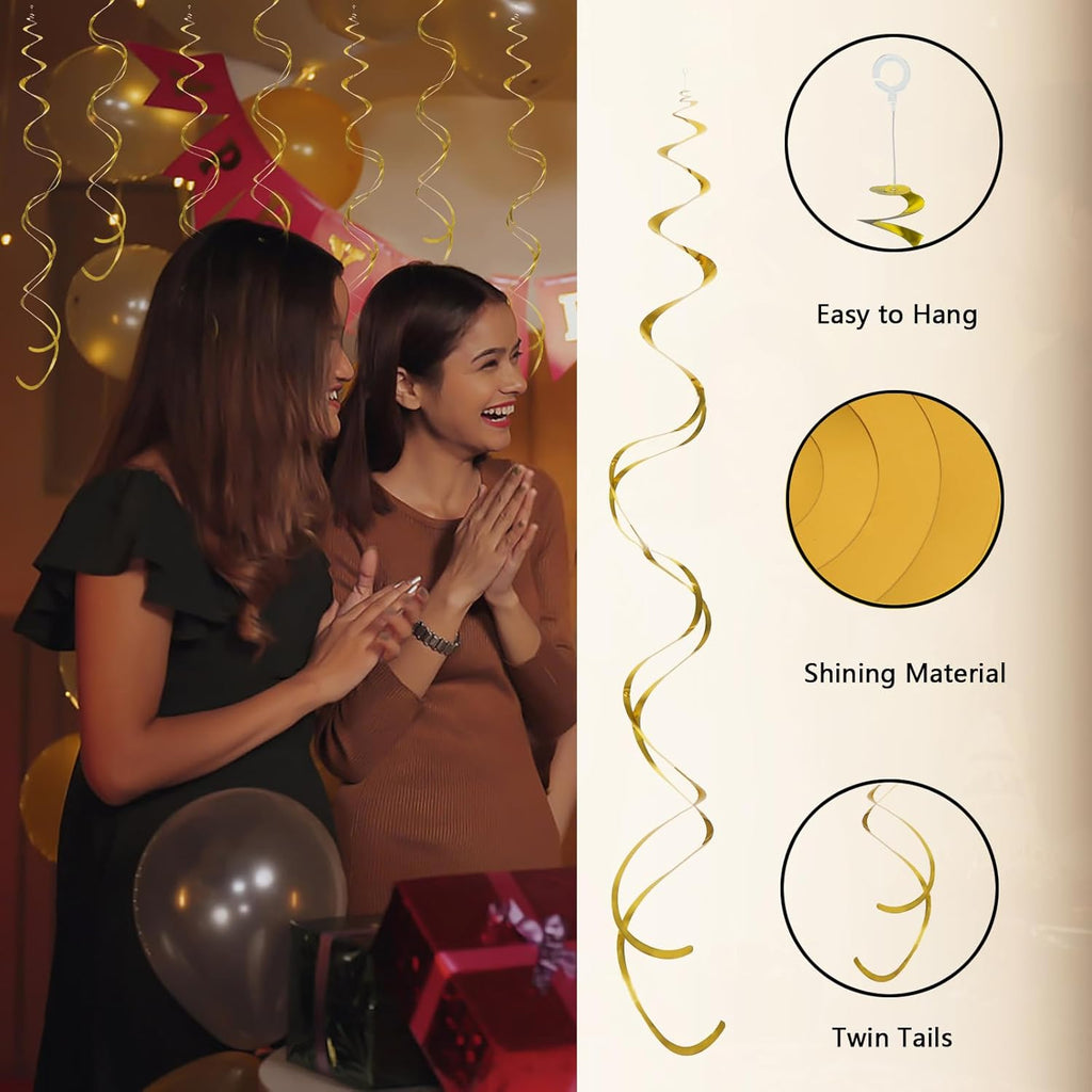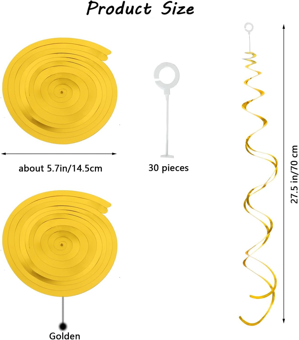 VALUE PACK: Package includes 30pcs twin tail gold hanging swirl decorations, equipped with 30pcs plastic hooks. These gold hanging swirls add the perfect touch to your party