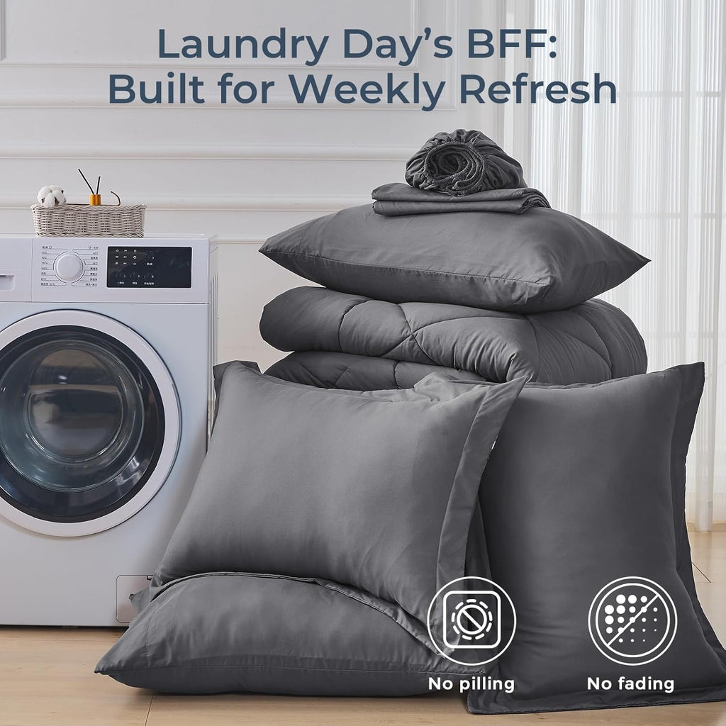 Cloud-like Material: The cal king comforter set is made of premium material, whether the comforter, bed sheet, or pillowcase, we all opt for upgraded premium microfiber, which is as soft as a cloud with no static electricity troubles or concerns