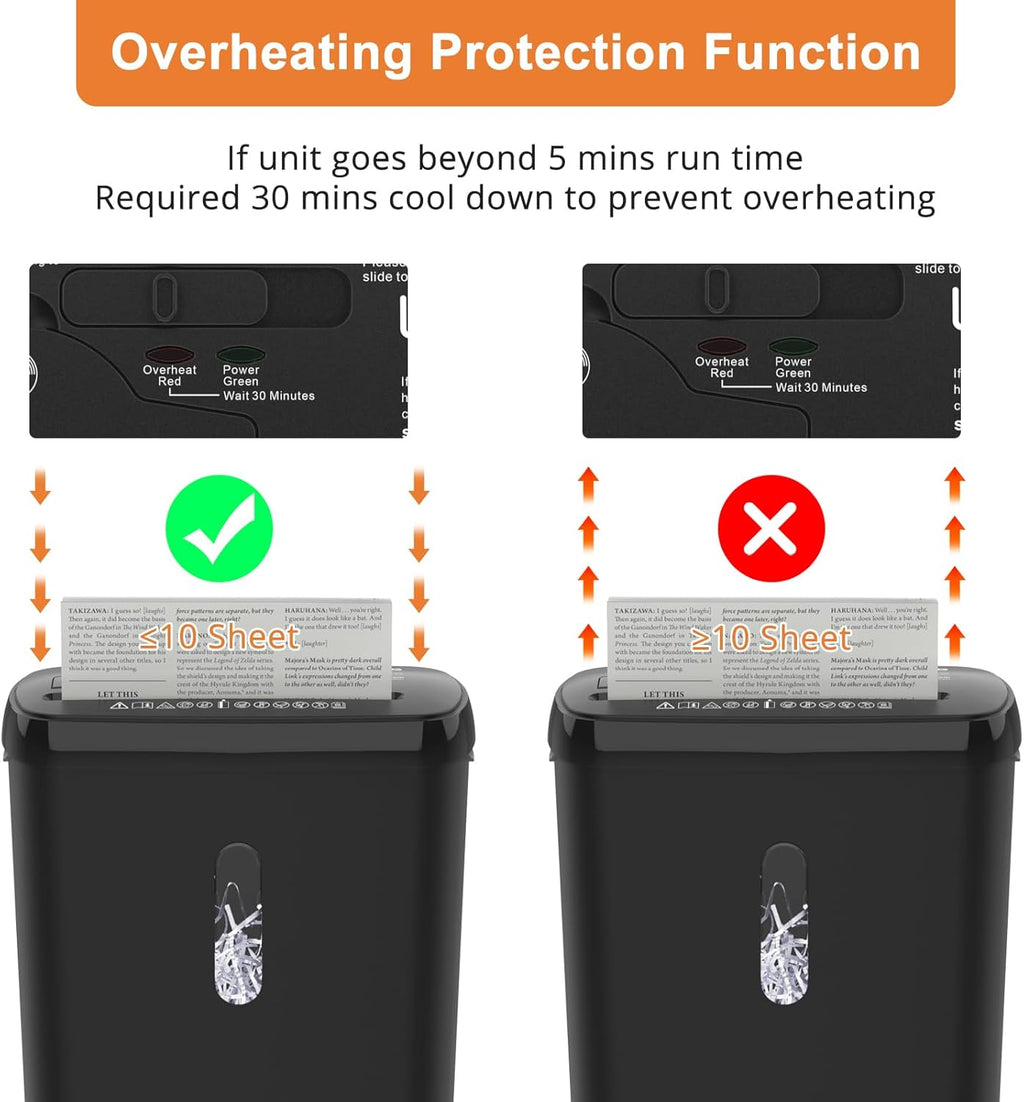 10-Sheet Strip Cut: With a maximum capacity of 10 sheets at a time, this shredder can handle all your shredding needs without the hassle of removing staples or clips. It can also shred credit card/CD junk mail.