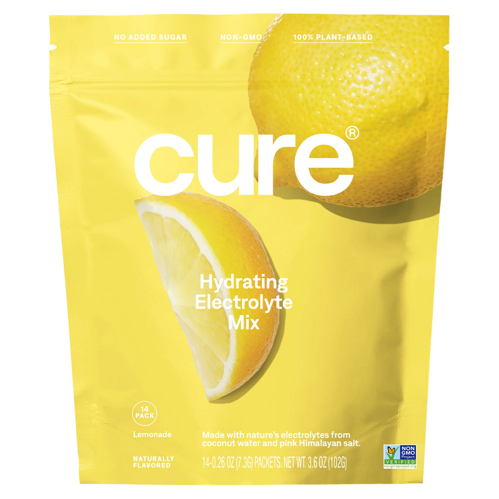 Cure's Hydrating Electrolyte Drink Mix is made with nature’s electrolytes from coconut water and pink Himalayan salt. Without essential electrolytes like sodium and potassium, the body can’t replenish adequately from everyday life: exercise, travel, late nights, or illness.