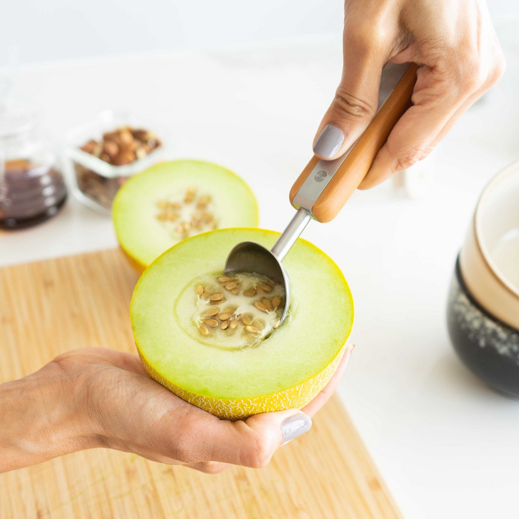 - Helps form perfect ice cream balls.