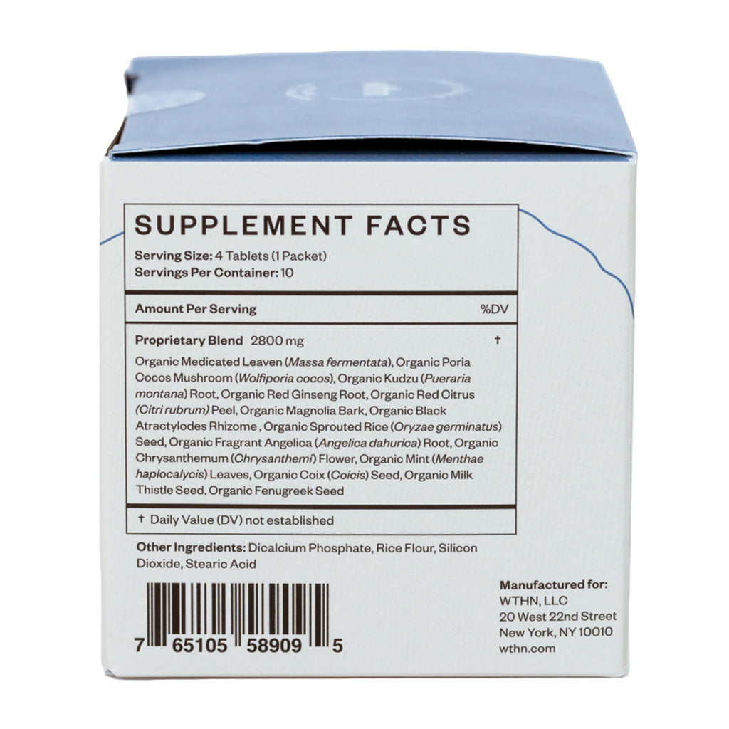 - Organic Black Atractylodes Rhizome, Organic Kuduz Root, Organic Angelica Dahurica Root, Organic Red Ginseng Root, Organic Coix Seed, Organic Chrysanthemum Flower, Organic Red Citrus Peel, Organic Milk Thistle Seed, Organic Fenugreek Seed, Organic Sprouted Rice Seed, Organic Medicated Leaven, Organic Magnolia Bark, Organic Peppermint Leaf, Organic Poria Cocos Mushroom.