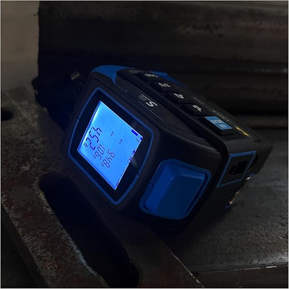 ④【All-Day Power & Portability】 Type-C fast charging (2hrs) powers 50+ hours of continuous use – lasts 1 week on job sites. Compact 5oz design clips to belts/tool belts, with anti-slip grip for overhead measurements.