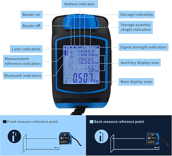 ②【Dual-Mode Smart Measurement】 Switch between 16.5ft tape measure (ideal for tight spaces) and 131ft laser rangefinder instantly. Patented one-click operation delivers 0.1s response time, perfect for contractors and DIYers needing split-second precision.