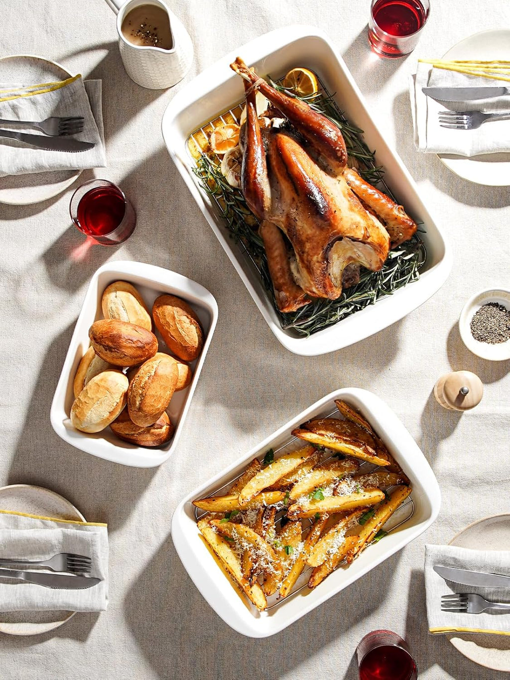Drip Racks for Healthier, Crispier Cooking: Each baking dish includes a matching oil-drip rack, perfect for roasting meats, bacon, and more. The racks help reduce excess grease, allowing you to cook delicious, healthier, and crispier meals
