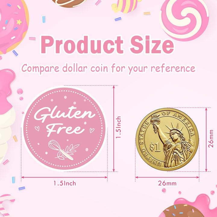 Gluten Free Pattern: The gluten free sticker design has won the love of people who pursue healthy eating; Each roll has 500 round stickers,sufficient quantity can meet your various decorative needs