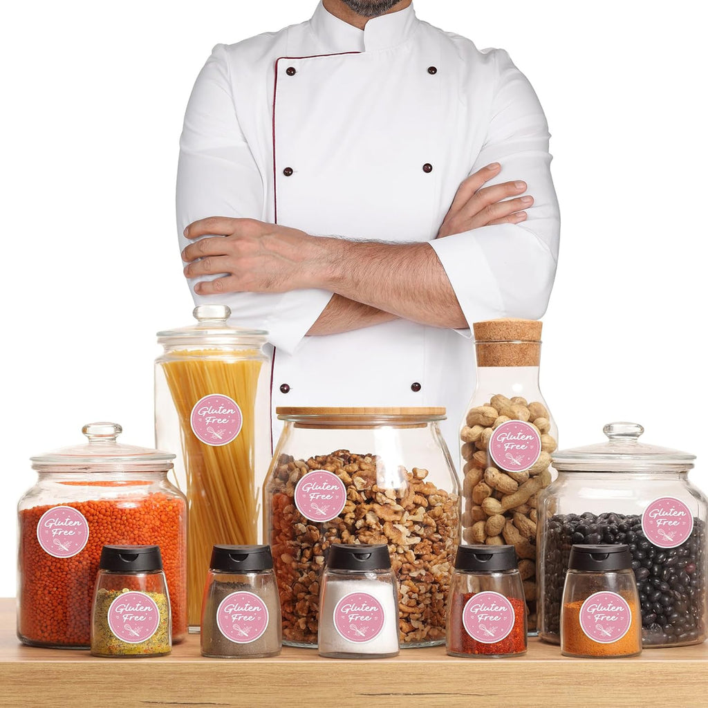 High-Quality and Safe: Stickers Labels made from high quality paper, feeling smooth., non-toxic and odorless.cutted fine, printed with bright colors and a photo-like shine that stick well to the surface of Gluten Free Food Retail Package Containers Jars Glass Bottle Envelopes Bread Bags