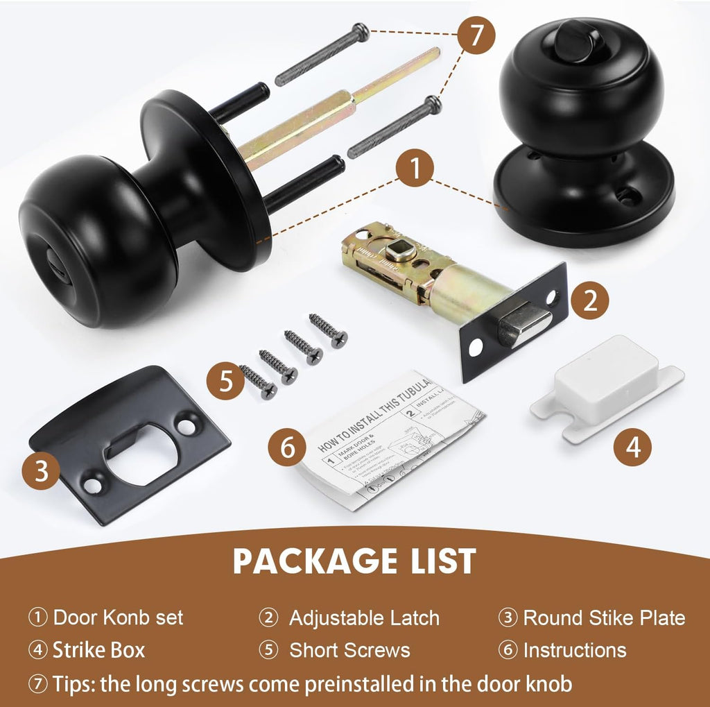 PREMIUM MATERIAL: This flat ball style privacy knob is sturdy and stable which is made of premium quality stainless steel, matte black finish, rust-free in a high humidity environment