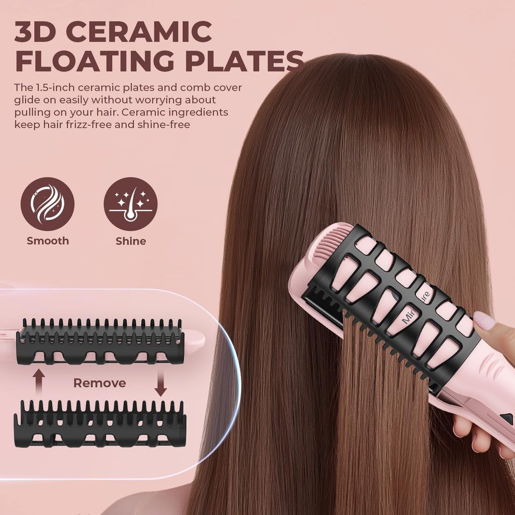 2-in-1 Straightening & Curling Versatility: This 1.5-inch hair straightener combines straightening and curling in one, ideal for creating sleek straight locks, bouncy curls, or loose waves. The 3D ceramic plates with a smooth comb cover glide effortlessly through hair, reducing tugging and frizz while enhancing natural shine—perfect for all hair types (fine, thick, curly, or color-treated).
