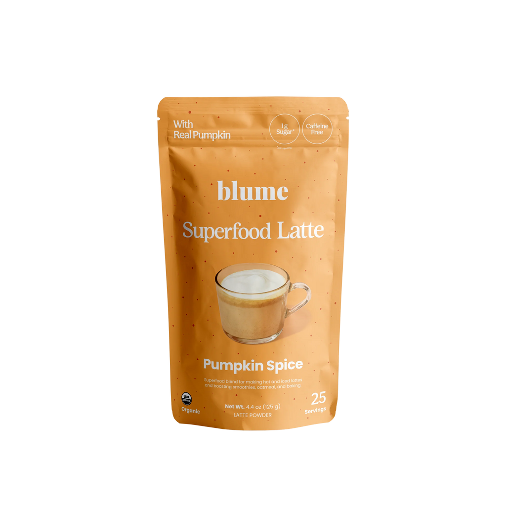 Finally, a Pumpkin Spice Latte made with real pumpkin. Blume swapped the syrups, dairy, and caffeine for whole superfood ingredients, so you can sip back with a barista-worthy PSL you can feel good drinking. Combining organic pumpkin and Canadian maple for a warm cup of velvety goodness. Tastes just like grandma’s pumpkin pie, but with only 1g of organic maple sugar and 56% of your daily vitamin A!