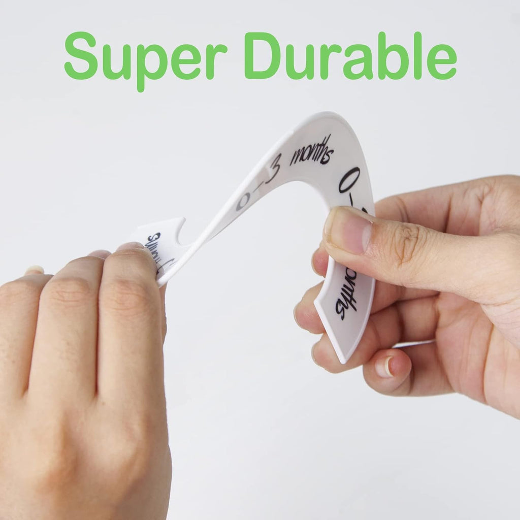 - The Baby Closet Dividers are double printed big words all over the plate so that parents can easily see it clearly even the Baby Closet Dividers are not staying upright. In addition, printed word will not fade but the sticker will fall down.