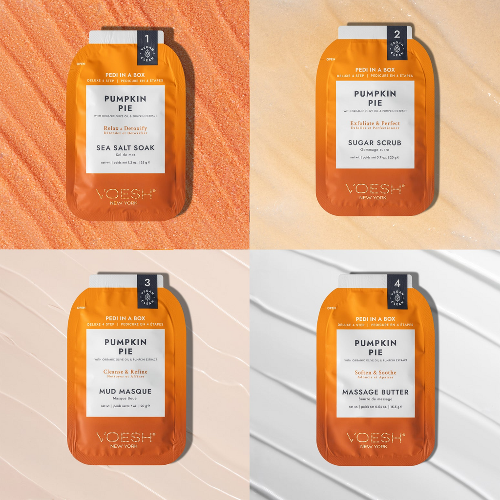 Embrace feelings of coziness with Pumpkin Pie. Available in a Pedi in a Box Deluxe 4 step and a luxurious, vegan body & hand crème, comfort & soothe skin with this warm, pumpkin scent every autumn season.