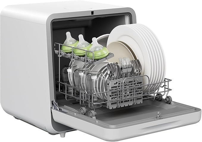 Customize your dishwashing routine with our countertop dishwasher, featuring 7 wash programs including Intensive, Babycare, ECO, Rapid, Normal, Glass, and Fruit modes. The Intensive, Babycare mode operates at a high temperature of 167°F to ensure complete and thorough cleaning.