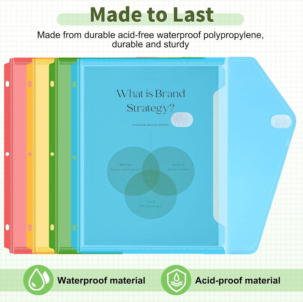 - Made to Last: Binder Pockets are made from long-lasting acid-free waterproof and dust-proof polypropylene, provide better protection for your files. Sturdy enough to withstand lots of use.