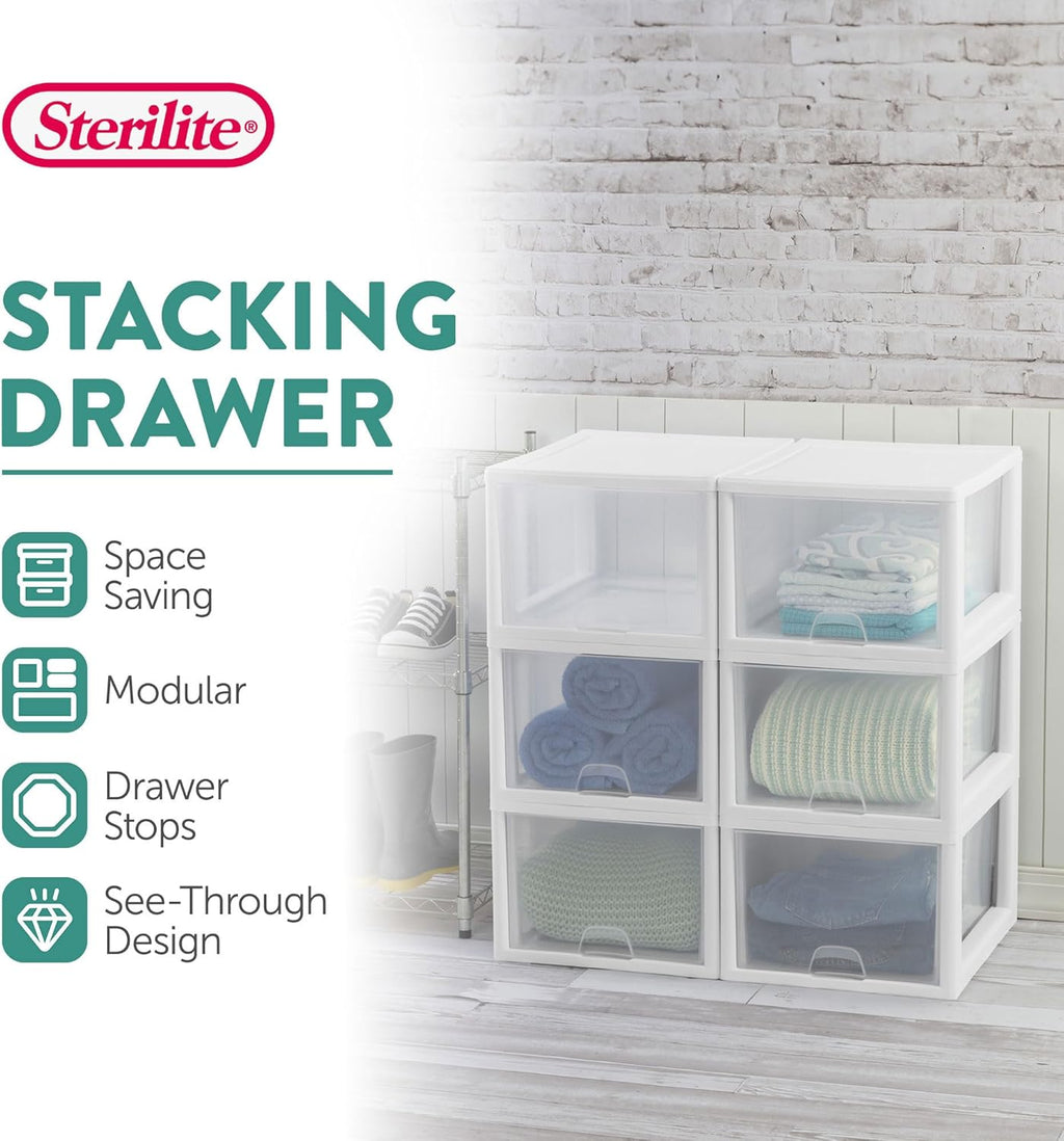 Compatible Footprint: Stacks securely with Sterilite’s 16 Quart Stacking Drawer, sharing the same footprint for a uniform and space-saving storage tower that maximizes closet and room space