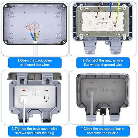 Our outdoor power outlet waterproof is perfect for use in powering outdoor swimming pools, garden, sheds, car garage, workshop, patio, lawn, building sites and commercial applications, and can also be used in indoor kitchens, laundry room, bathroom and basement.