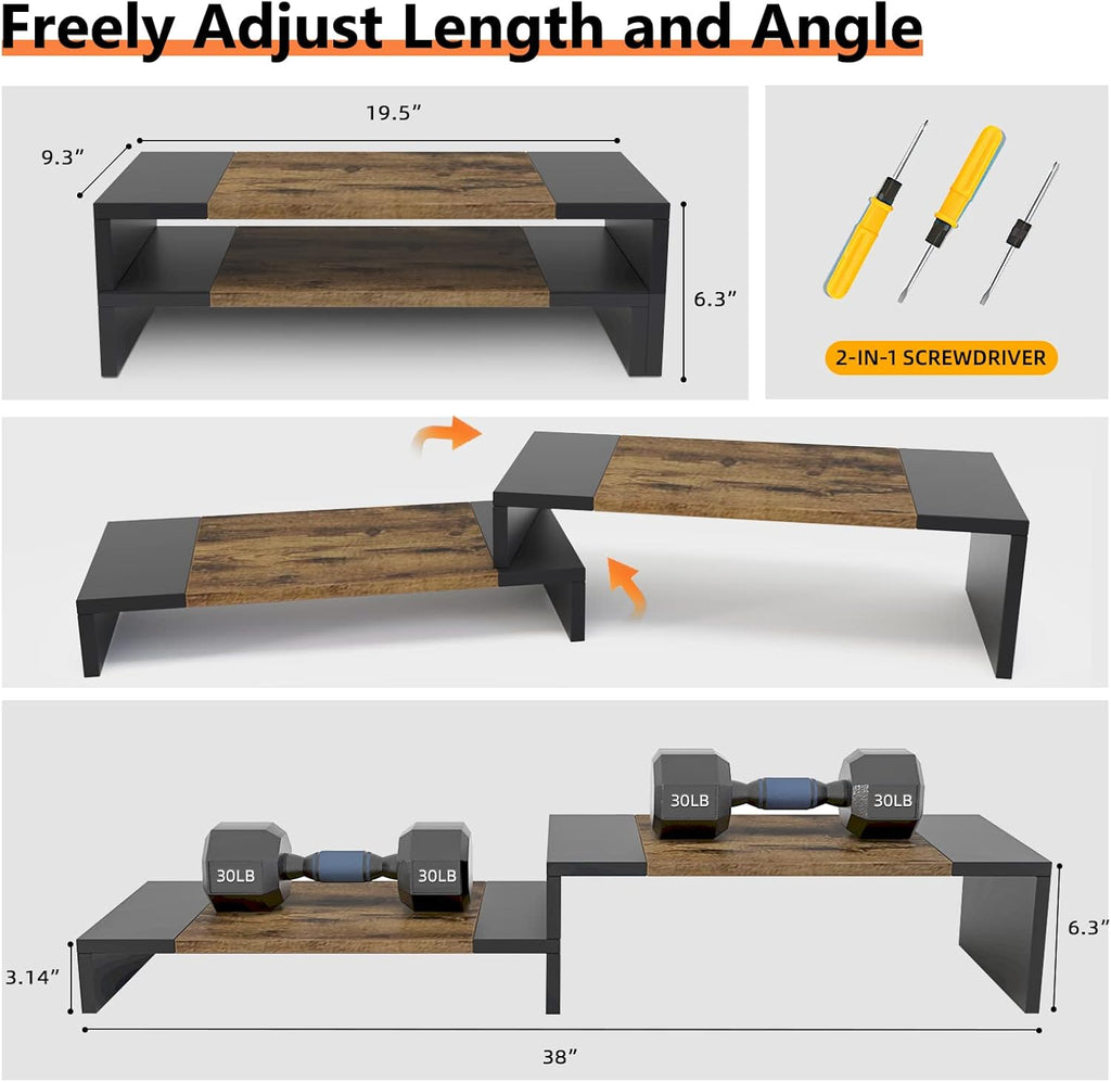 Angle and Length Adjustable: Freely adjust length and angle, the length of computer stand can be adjusted from 18.9 inch to 38.4inch. It can be used at both L desk and regular tables. The adjustable height and Angle gives you a comfortable office experience.