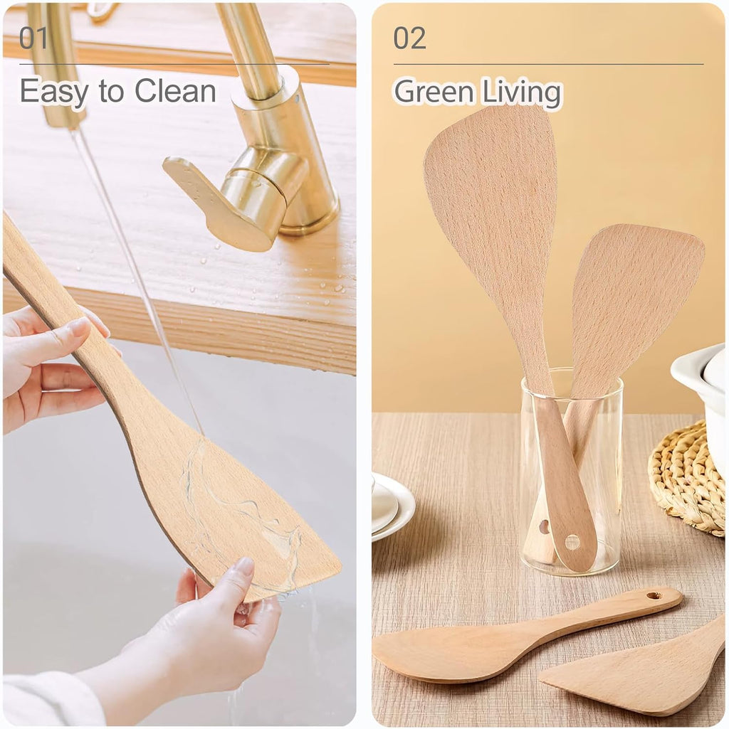 Easy to Clean: The surface of the beech spatula is smooth, not easy to get oily, and easy to clean. Just juse soap and water to clean and hange it dry for your next use